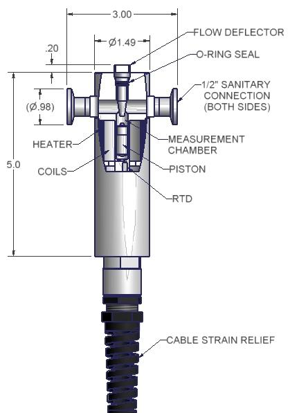 一個(gè)導(dǎo)流,放置在活塞、移動(dòng)流體進(jìn)入測(cè)量室。這個(gè)特性,加上不斷的活塞運(yùn)動(dòng),保持新鮮和機(jī)械磨砂樣品室。一個(gè)內(nèi)置的溫度探測(cè)器(RTD)實(shí)際溫度測(cè)量的感官室。