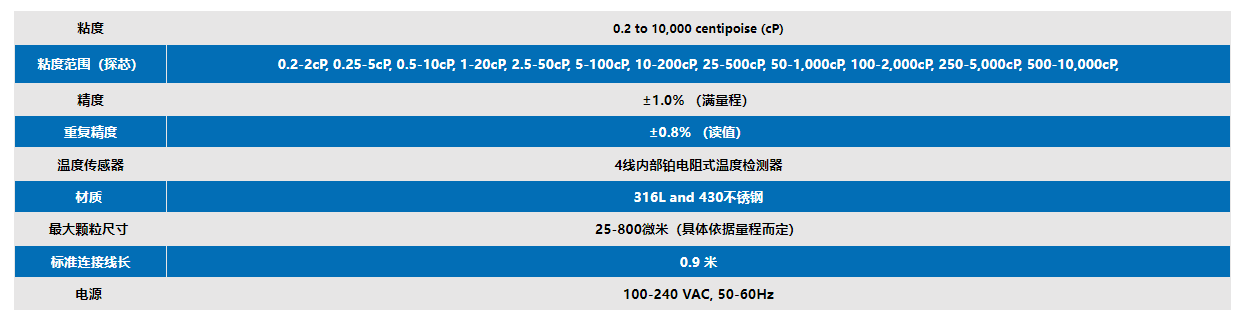 VISCOlab 4000小樣品粘度計規格參數: