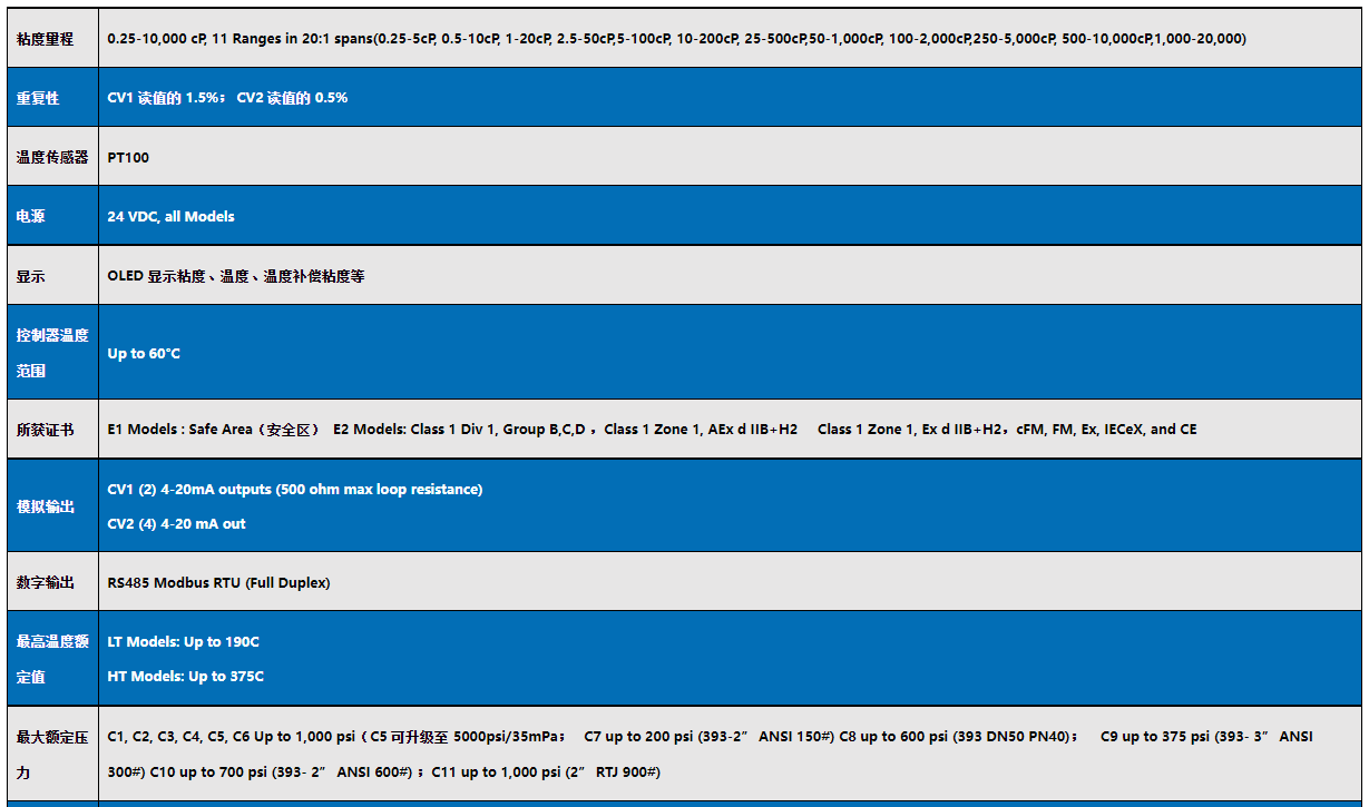 VISCOpro2100 粘度計規(guī)格參數(shù):