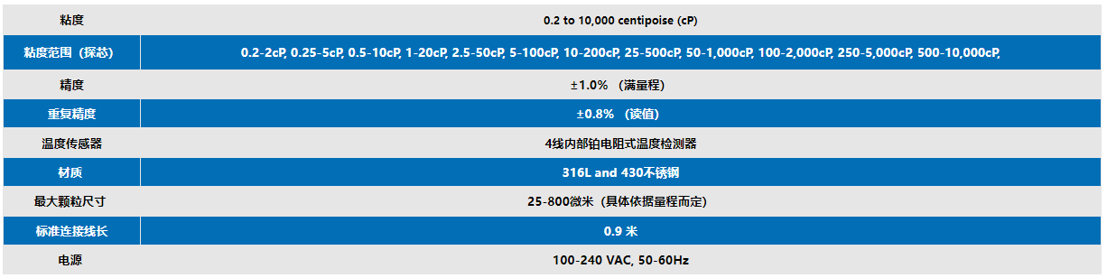 可在12個(gè)重疊的20:1粘度范圍內(nèi)進(jìn)行測(cè)量。粘度可顯示為厘泊(cP)或厘斯托克斯(cSt),溫度可顯示為攝氏度(℉)或華氏度(℃)。