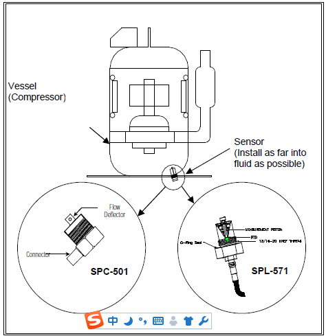 SPL571 OILSENSE可整齊地安裝在1/2英寸的塊狀接頭或三通中。可在0.5至500厘泊(cP)之間的6種不同20:1粘度范圍內(nèi)進(jìn)行測(cè)量。建議流過傳感器的液體流量高達(dá)1.0英尺/秒。